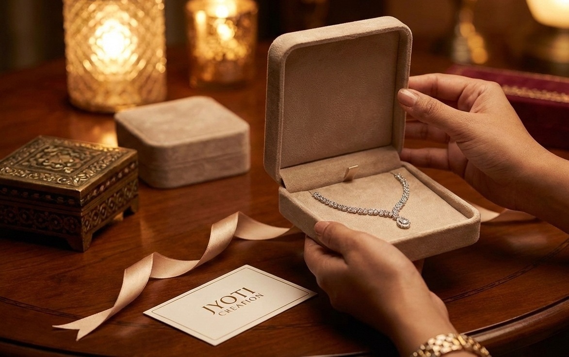 Discover Jyoti Creation’s luxury jewellery gifting collection—where every piece tells a story of love, elegance, and unforgettable moments. Because she deserves nothing but the best ✨
